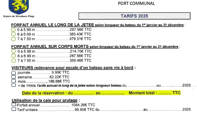 Tarifs du port de Rivedoux 2025
